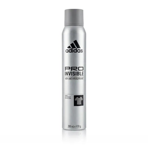 Adidas Pro Invisible 48H antiperspirant 200 ml M je pánsky antiperspiračný dezodorant, ktorý poskytuje až 48-hodinovú ochranu proti poteniu a nepríjemnému zápachu. Tento antiperspirant pre mužov je navrhnutý tak, aby minimalizoval výskyt bielych stôp na oblečení a zároveň zanechal sviežu mužnú vôňu. Vďaka svojmu zloženiu pomáha udržiavať pokožku v suchu a pohodlí aj počas náročného dňa.