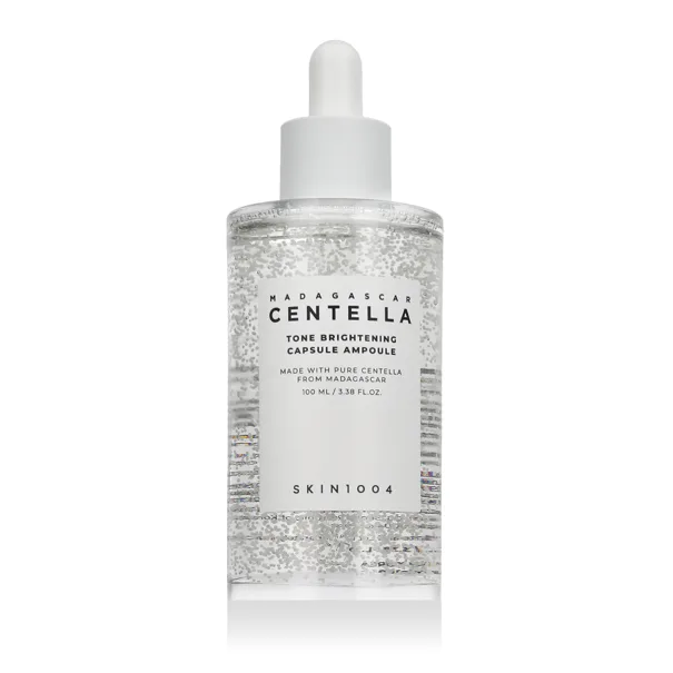 SKIN1004 Rozjasňujúce sérum s kapsulou Centella Tone Ampoule 100 ml z Madagaskaru je rozjasňujúce sérum, ktoré pomáha vyrovnávať tón pleti, redukovať mdlosť a podporovať prirodzený jas pleti. Táto inovatívna rozjasňujúca ampulka v kapsuliach kombinuje silu Centella Asiatica so zložkami zameranými na zjednotenie tónu pleti a zlepšenie jej štruktúry. Ľahká textúra s viditeľnými kapsulami sa po aplikácii rozpustí a zanechá pleť hydratovanú, hladkú a rozjasnenú.
